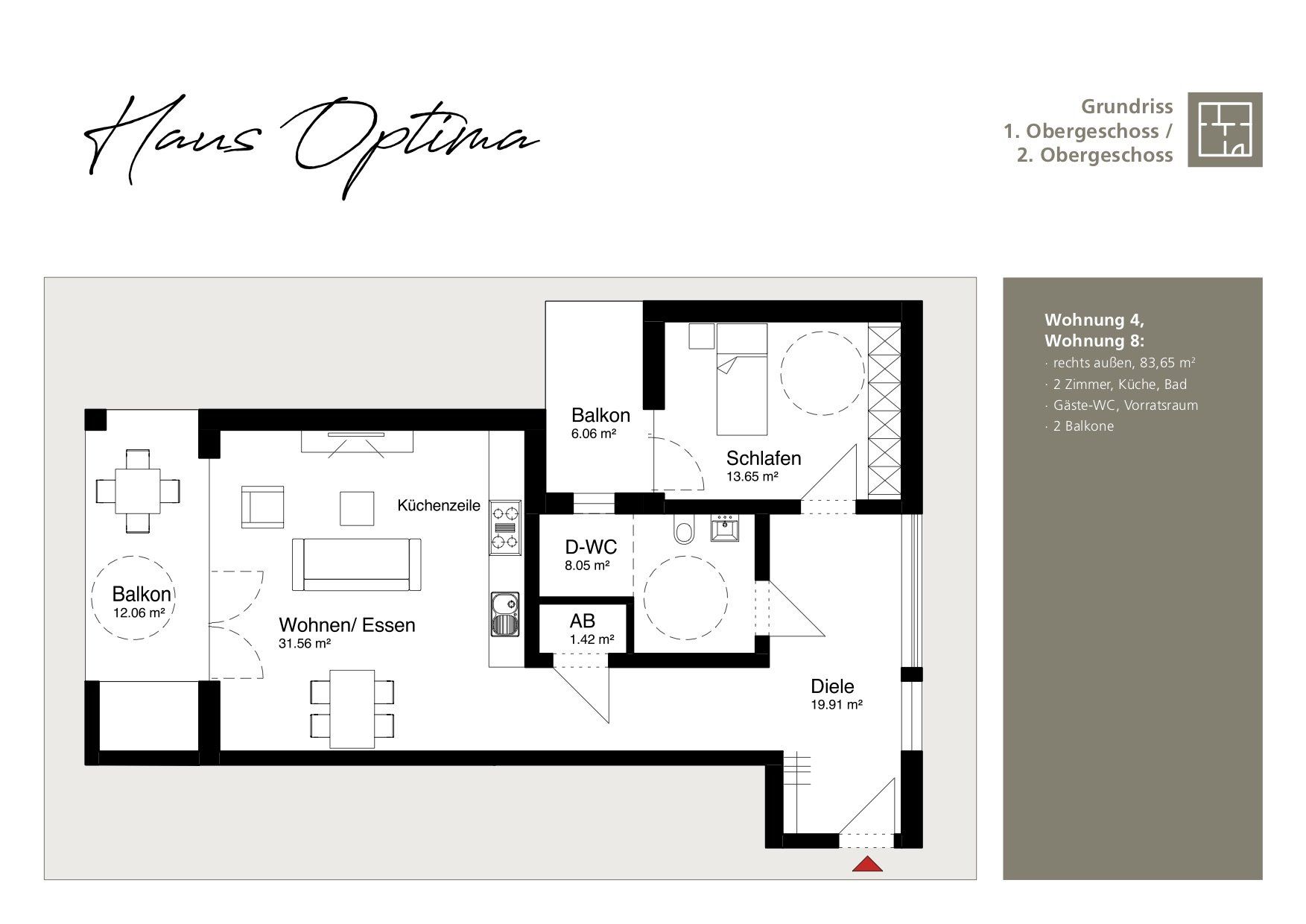 Das Haus Optima verfügt über 10 Wohneinheiten zwischen 79 und 128 m2.