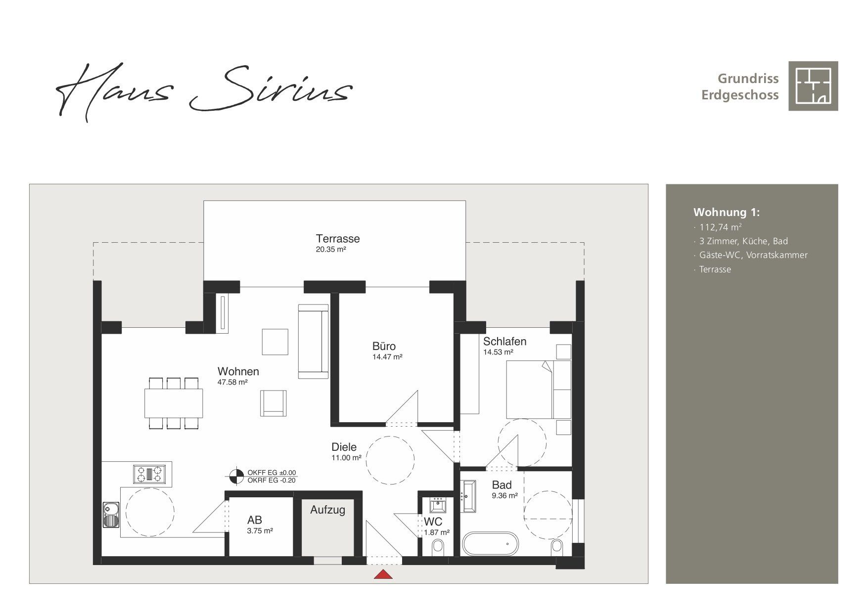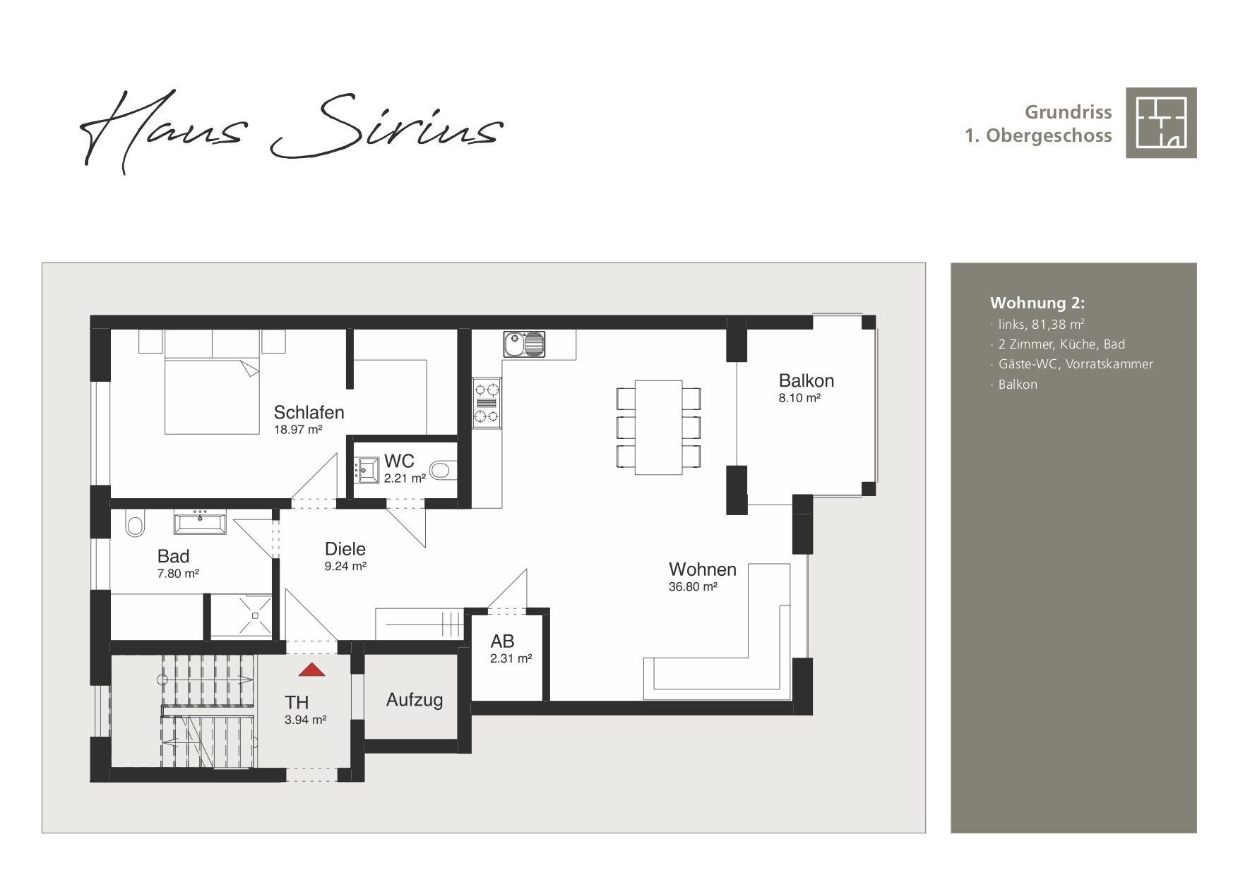 Die Häuser Dapako und Sirius sind zwei eigenständige, baugleiche Häuser mit je 5 Wohneinheiten, von 81 bis 151 m2.